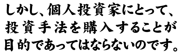 驚かれましたでしょうか。インターネット上の教材ビジネスでは、数万円、中には数十万円の教材や投資ソフトも珍しくありません。1万円を切る価格での投資ノウハウの販売には「安かろう、悪かろうなんじゃないの」という問い合わせのメール・お電話もいただきます。