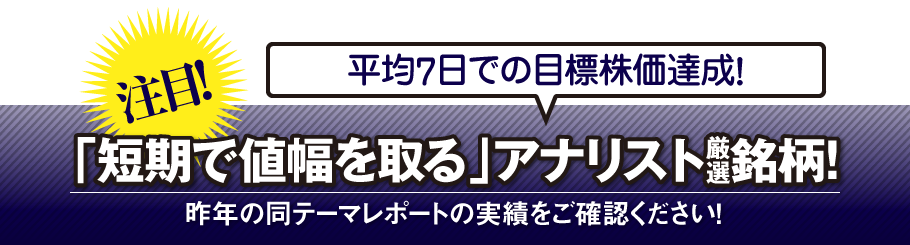 この3つの条件をすべて満たしている必要はありません。それぞれによって、株価が上昇する理由も違いますし、株価が上昇するタイミングも変わってくるからです。あなたがレポートを読んで、魅力的に感じたものを選んでいただければよいのです。まさにハイリターン投資です。